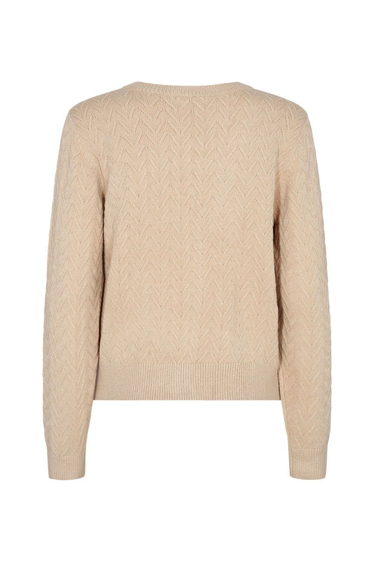 SoyaConcept - Blissa 30 - Elegant Cardigan with Deep V-Neck, Button Closure and a Geometric Knit -Pattern - Sand - 33306