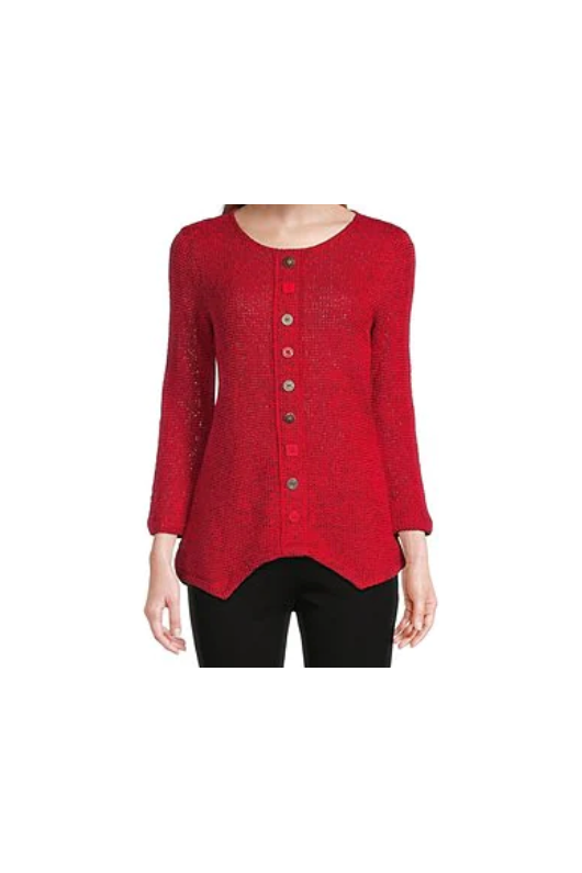 Multiples - 3/4 Sleeve Scoop Neck Faux Button Front Shark-Bite Sweater - Varied Colors - M42107TM