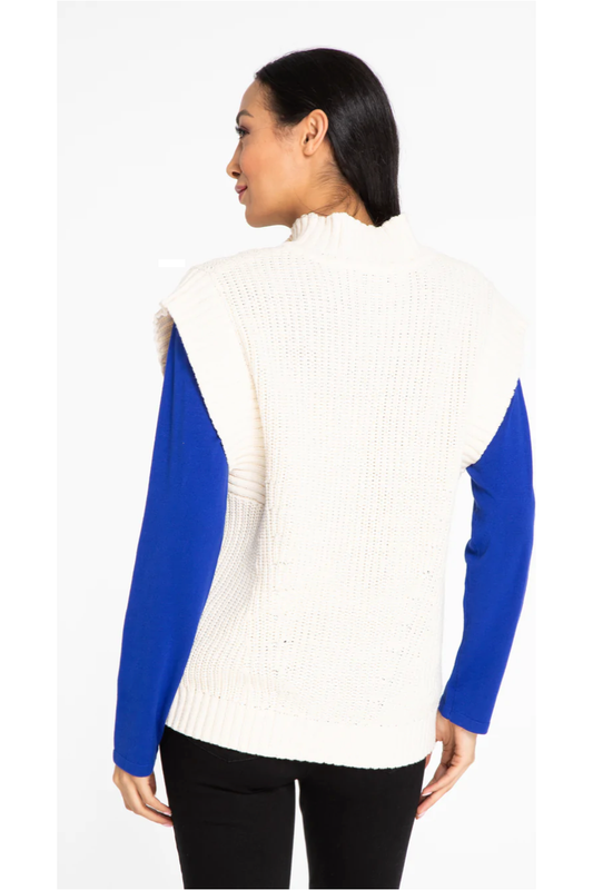 Multiples - Mock Neck Zip Front Sweater Vest - Vanilla -M42502