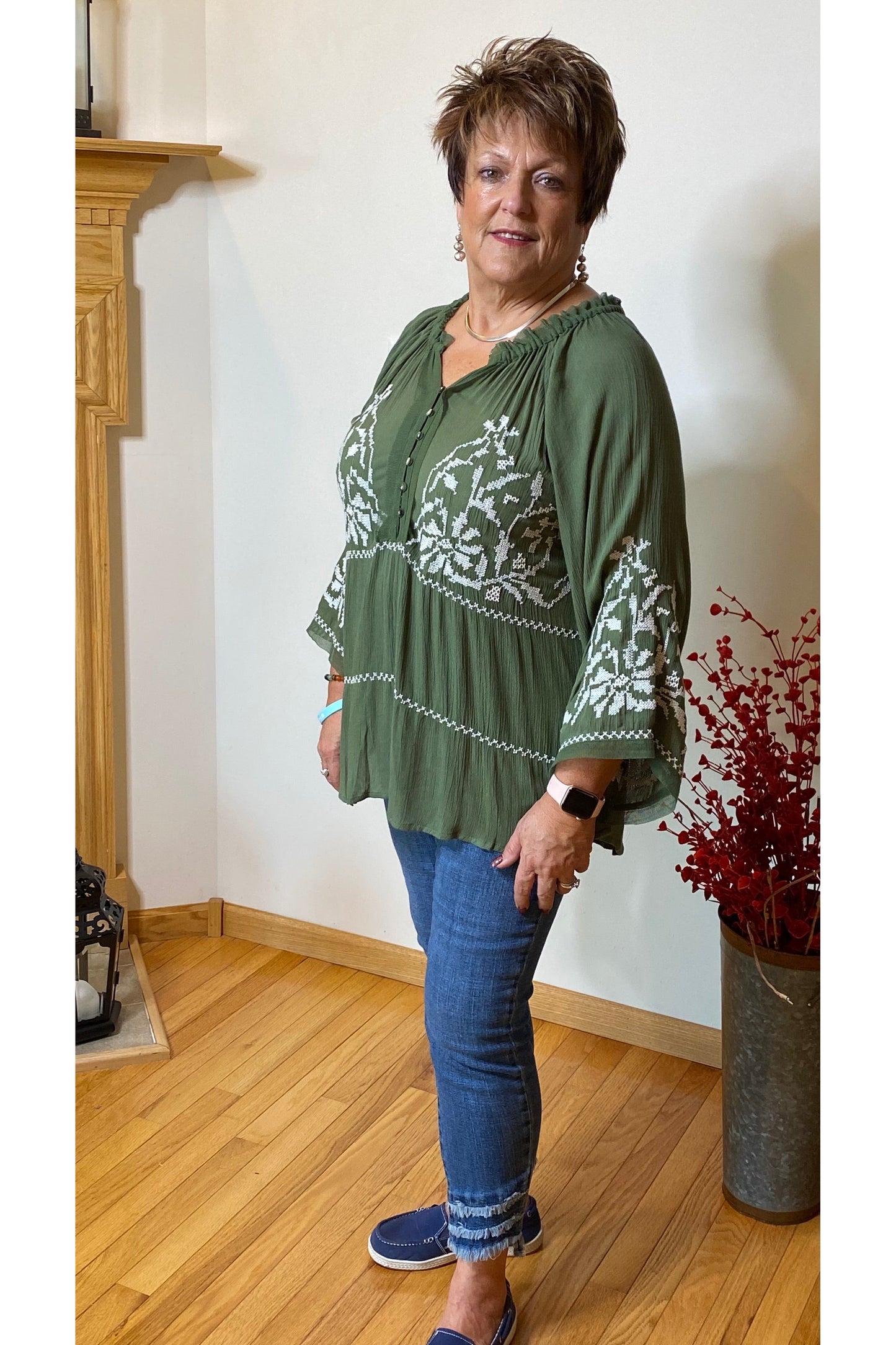 Tru Luxe - 3/4 Sleeve High Low Hem Embroidered Peasant Top - T31275BM