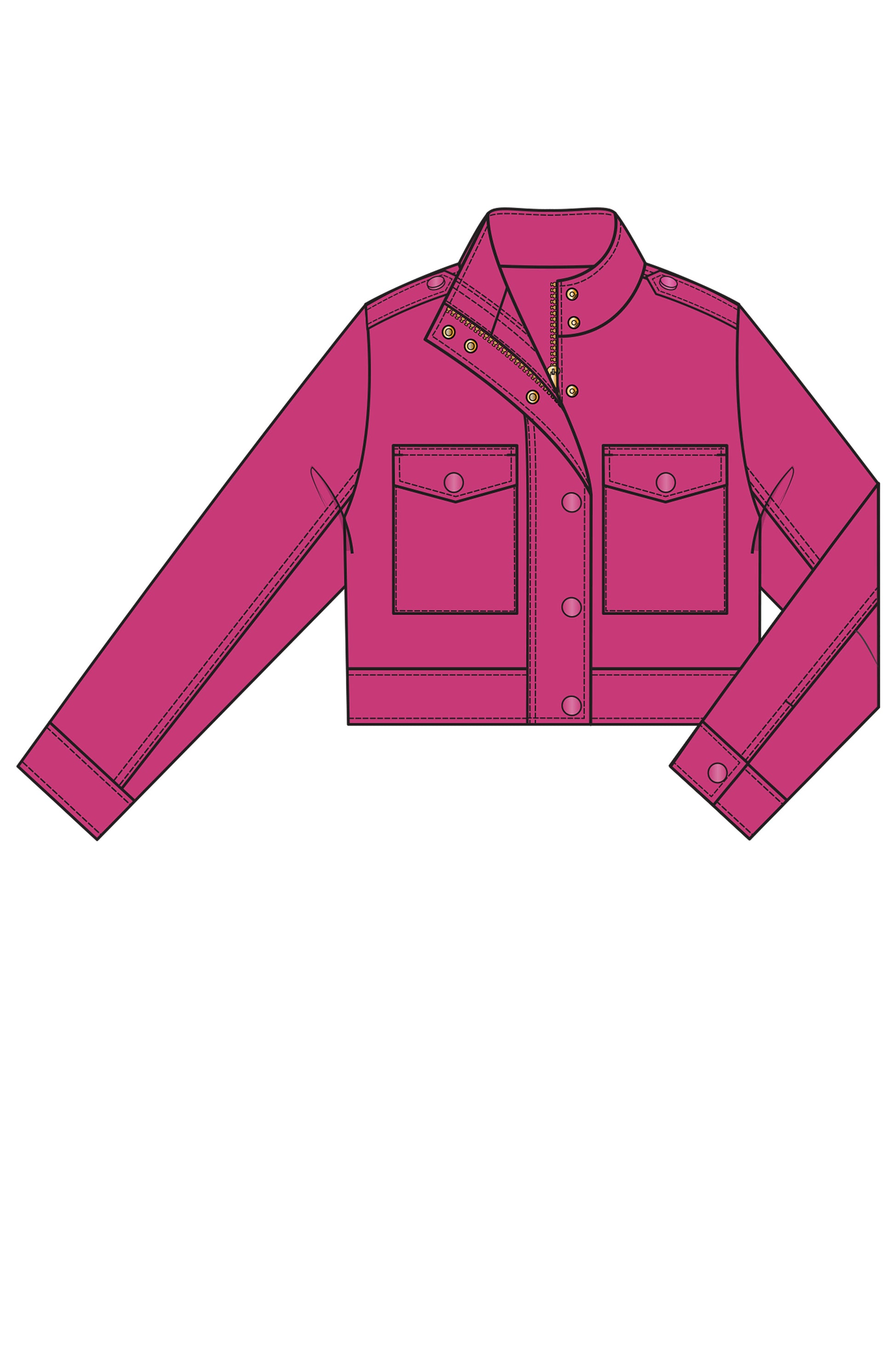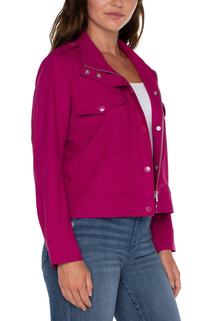 Experience the ultimate blend of minimalism and utility with Liverpool's Vivacious Cropped Field Jacket. Made with soft touch twill and a touch of flirtiness, this jacket offers versatility and style with double front patch pockets, collared neckline, and wrist snap closures. Embody edgy and feminine in this statement piece.